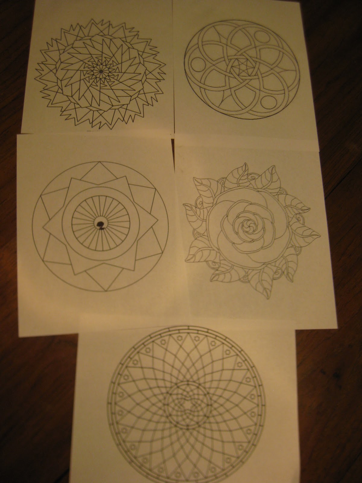 We simply googled Mandala pages and downloaded several different free pages available from a few different sites.